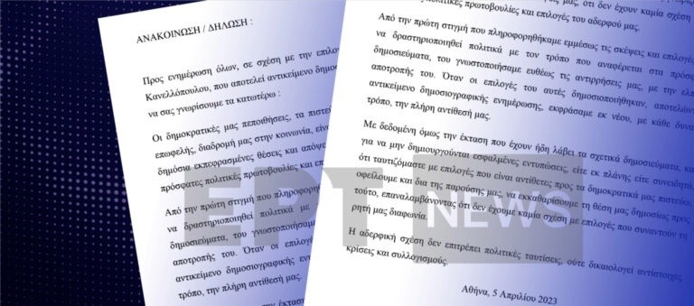 Μάλιστα, στη δήλωσή τους, την οποία έφερε στο φως η εκπομπή του ERTNEWS “UPDATE”, τονίζουν ότι η οικογένεια Κανελλόπουλου ήταν πάντα δημοκρατική και δεν είχε ποτέ σχέσεις με κόμματα και ιδεολογίες της άκρας δεξιάς.