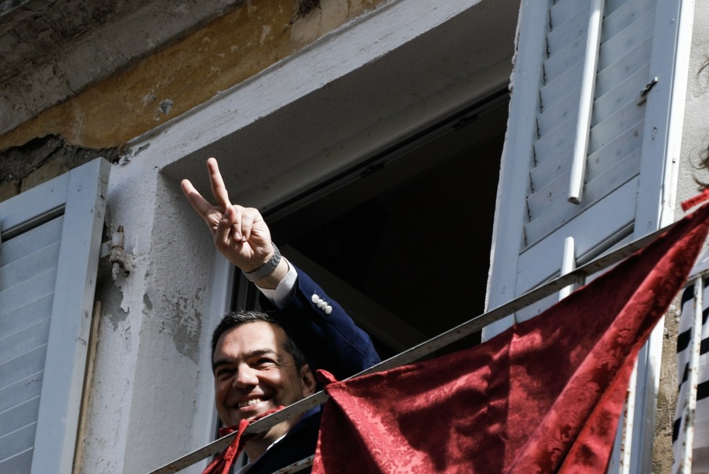 Μάλιστα ο Πρόεδρος του ΣΥΡΙΖΑ βρέθηκε σε ένα μπαλκόνι μαζί με τη Μπέτυ Μπαζιάνα και έσπασε και αυτός με τη σειρά του έναν από τους Μπότηδες, κάνοντας και το σήμα της νίκης.