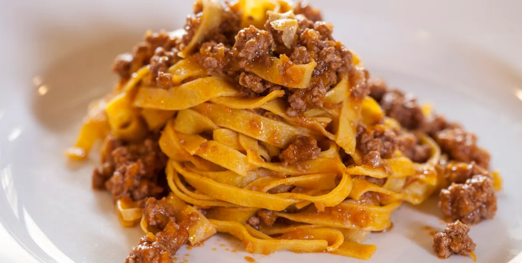 Η πεντανόστιμη αυθεντική σάλτσα με κιμά, ντομάτα και μεσογειακό σοφρίτο (σοταρισμένα λαχανικά) από την Μπολόνια της Ιταλίας ετοιμάζεται με τα καλύτερης ποιότητας, φρέσκα υλικά και μαγειρεύεται αργά και σε χαμηλή θερμοκρασία.