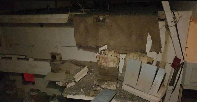 Συγκεκριμένα, στην περιοχή των Καμινίων, κατέρρευσε τσιμεντένιο τμήμα ταράτσας από οικία, παρασύροντας και μπαλκόνι.