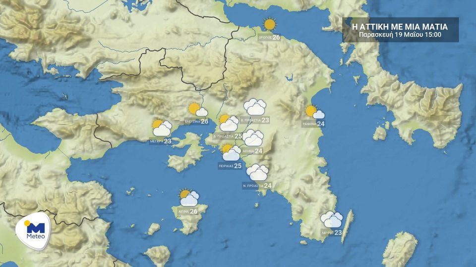 Άστατος θα είναι ο καιρός στην Αττική με λίγες νεφώσεις οι οποίες τις θερμές ώρες της ημέρας θα αυξηθούν με πιθανότητα για πρόσκαιρους όμβρους. Οι άνεμοι θα πνέουν από διάφορες διευθύνσεις με εντάσεις έως 2-3 μποφόρ και πρόσκαιρα τις θερμές ώρες της ημέρας νότιοι 4 μποφόρ. Η θερμοκρασία θα κυμανθεί από 17 έως 24-25 βαθμούς.