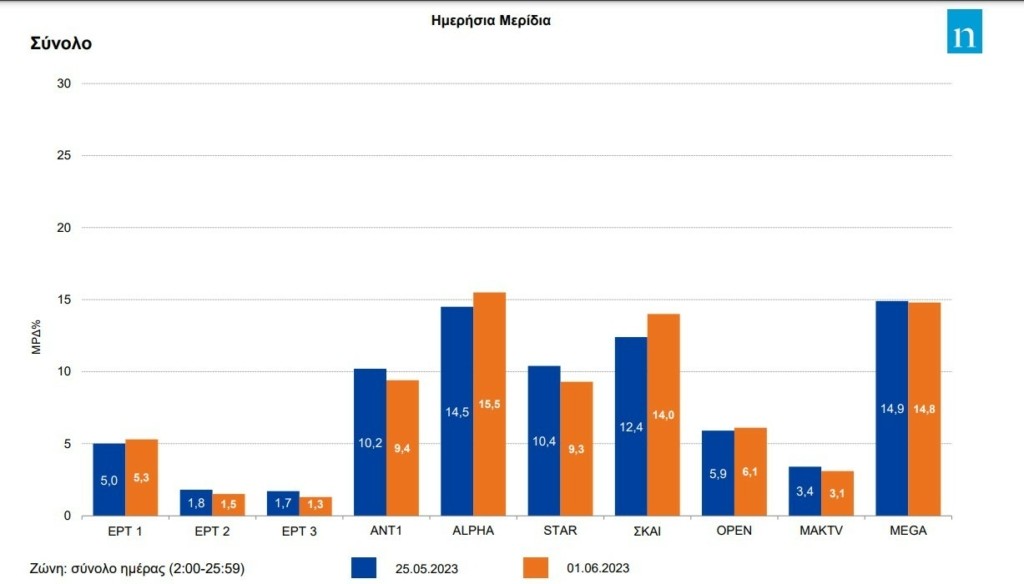 Πιθανόν ότι έχασε το Mega (-0,2%) να το πήρε ο ΣΚΑΪ καθώς το μερίδιο του είχε αντίστοιχη διαφοροποίηση αλλά με θετικό πρόσημο.