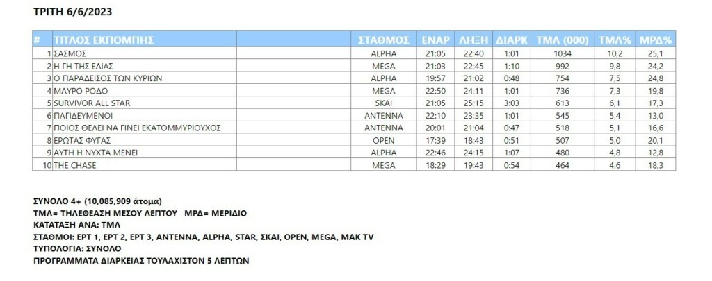 Bάλτε με το μυαλό σας τις «μάχες» που δόθηκαν μεταξύ των υπόλοιπων προγραμμάτων της ημέρας για πολύ λιγότερους…