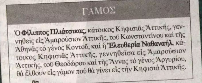 Δείτε την αναγγελία του γάμου που δημοσίευσε η “Εστία”