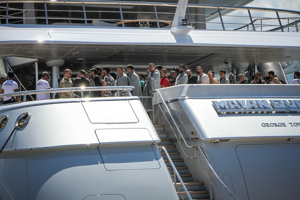 Προκάλεσε εντύπωση η εικόνα των εξαθλιωμένων μεταναστών που διασώθηκαν από το ναυάγιο του αλιευτικού ανοιχτά της Πύλου και μεταφέρθηκαν στην Καλαμάτα με ένα πολυτελέστατο γιοτ, το «Mayan Queen IV».