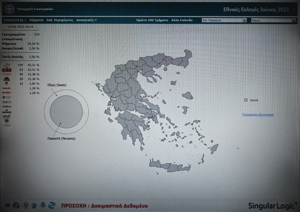 Ολοκληρώθηκε με επιτυχία η τελική γενική δοκιμή λήψης και μετάδοσης των αποτελεσμάτων των βουλευτικών εκλογών της 25ης Ιουνίου, παρουσία της υπηρεσιακής υπουργού Εσωτερικών, Καλλιόπης Σπανού.