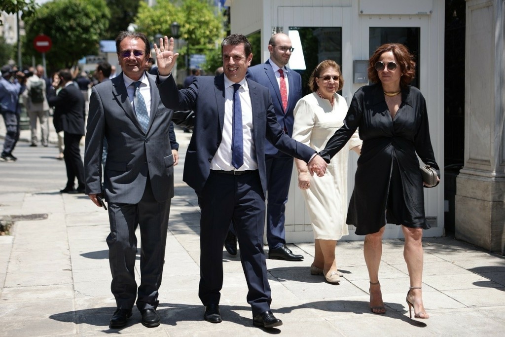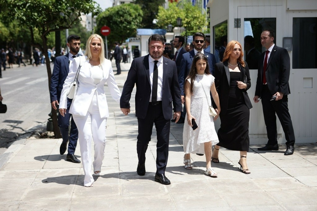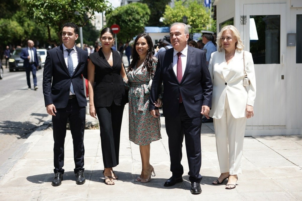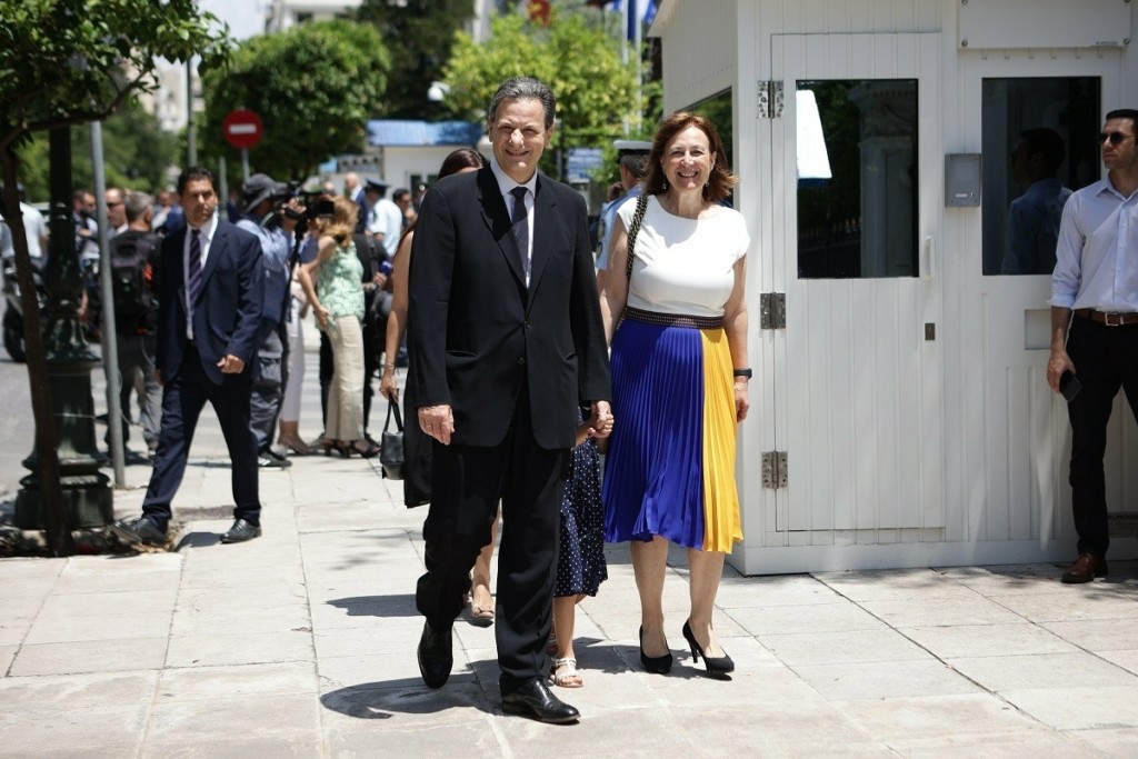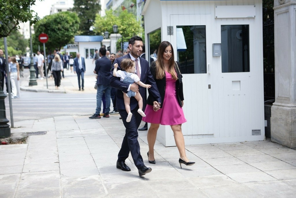 Οι υπουργοί της νέας κυβέρνησης έφτασαν στις 13:00 στο Προεδρικό Μέγαρο. Μαζί τους ήταν οι οικογένειές τους, τα παιδιά, οι σύζυγοι και οι σύντροφοί τους.