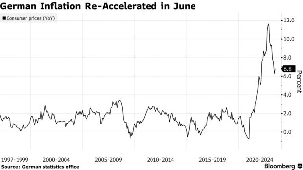 Ο πληθωρισμός επιταχύνθηκε εκ νέου στη Γερμανία και επιβραδύνθηκε δραστικά στην Ισπανία, απόδειξη της ανομοιόμορφης κατάστασης που κρατά την Ευρωπαϊκή Κεντρική Τράπεζα επικεντρωμένη στην περαιτέρω νομισματική σύσφιξη.