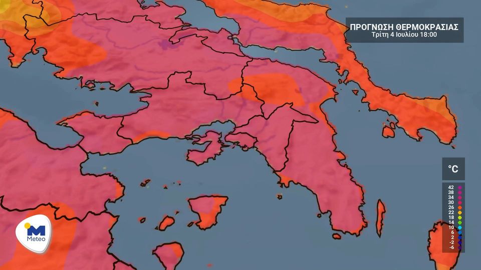Η θερμοκρασία θα κυμανθεί στη Δυτική Μακεδονία από 14 έως 31 βαθμούς, στην υπόλοιπη Βόρεια Ελλάδα από 18 έως 34-36, στην Ήπειρο από 18 έως 34 βαθμούς, στη Θεσσαλία από 18 έως 36-37, στα υπόλοιπα ηπειρωτικά από 19 έως 35-37 βαθμούς, στα νησιά του Ιονίου από 19 έως 34 και στα νησιά του Αιγαίου και την Κρήτη από 19 έως 32-34 βαθμούς, ενώ στα νησιά του Ανατολικού Αιγαίου οι μέγιστες θα φτάσουν στους 35-37 βαθμούς Κελσίου.
