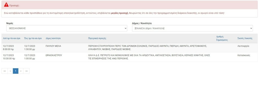 Όπως αναφέρει ο διαχειριστής “καταβάλλεται κάθε προσπάθεια για τη συντομότερη επανηλεκτροδότηση, εντούτοις, επιβάλλεται μεγάλη προσοχή, θεωρώντας ότι σε όλη την προγραμματισμένη διάρκεια διακοπής, οι αγωγοί είναι υπό τάση”.