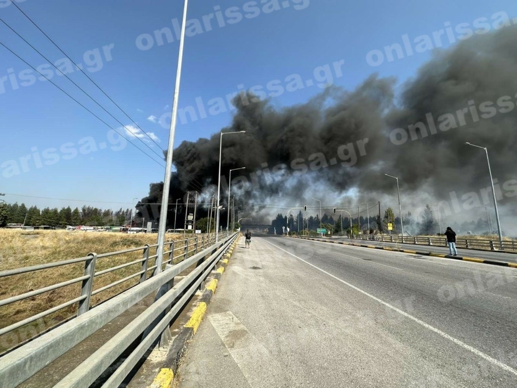 Φωτιά σε χορτολιβαδική έκταση ξέσπασε το μεσημέρι της Τρίτης, δίπλα στον κόμβο Πλατυκάμπου επί της Εθνικής Οδού στη Λάρισα.