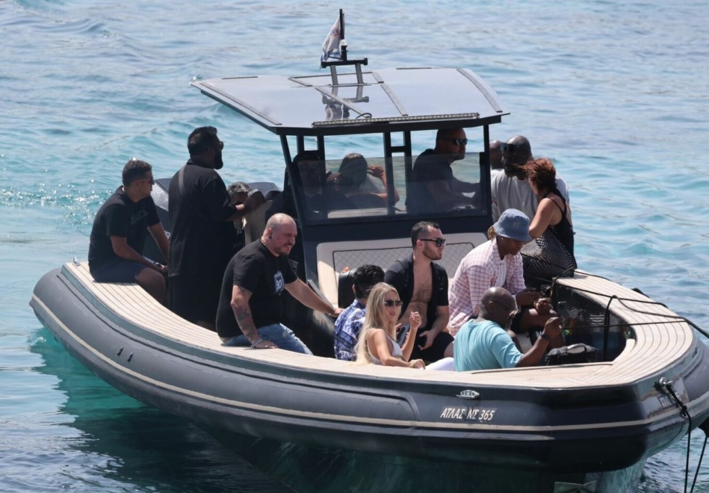 Επιβιβάστηκε σε φουσκωτό της Don Blue Yachting που τον μετέφερε στα Ρήνεια για να κολυμπήσει στα κρυστάλλινα νερά και να χαλαρώσει λίγες ώρες πριν παίξει στο Santanna.