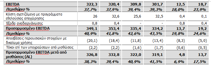 Τα περιθώρια EBITDA, Προσαρμοσμένο EBITDA και Προσαρμοσμένο EBITDA μετά από μισθώσεις (AL) (%) υπολογίζονται διαιρώντας τα αντίστοιχα EBITDA με το σύνολο του κύκλου εργασιών.