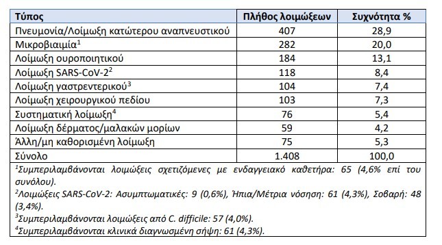 Ενδεικτικό είναι πως το 69,6% των λοιμώξεων εμφανίστηκε 48 ώρες μετά την εισαγωγή στο νοσοκομείο, ενώ στο 28,6% των λοιμώξεων ο ασθενής παρουσίαζε τη λοίμωξη κατά την εισαγωγή του στο νοσοκομείο.