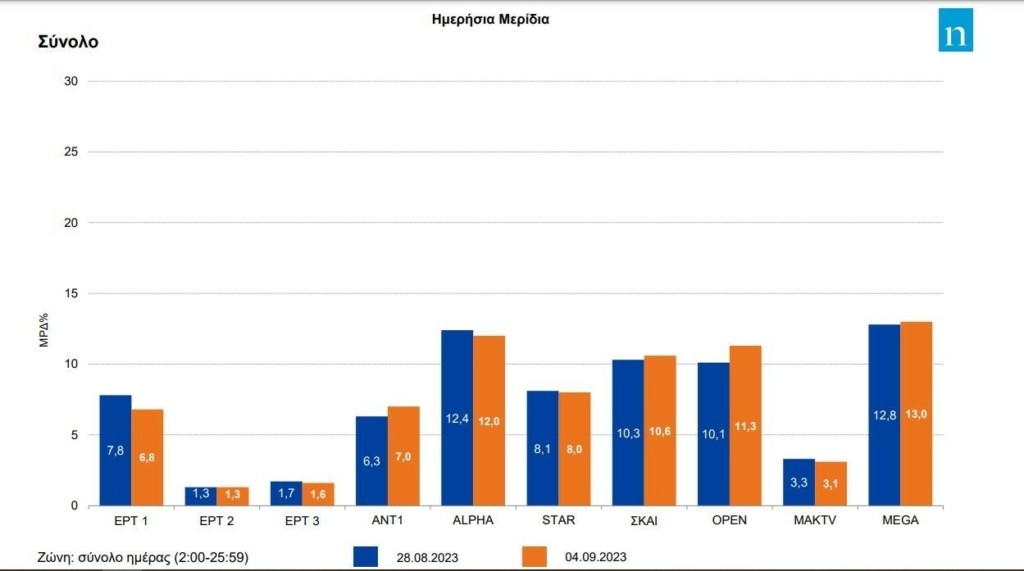 Με τέσσερα κανάλια να έχουν διψήφια μερίδια τηλεθέασης φαίνεται ότι οι διακοπές, επισήμως, έλαβαν τέλος. Στο μεταξύ το Mega πήρε «κεφάλι» με διαφορά ασφαλείας από τον ανταγωνισμό τη Δευτέρα.