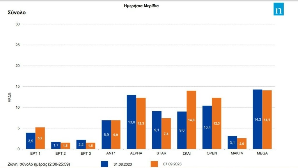 Το Mega απέσπασε το μεγαλύτερο κομμάτι από την πίτα τηλεθέασης και ήταν οριακά μεγαλύτερο από εκείνο του Σκάι.