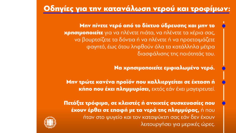 Οδηγίες για την κατανάλωση νερού και τροφίμων