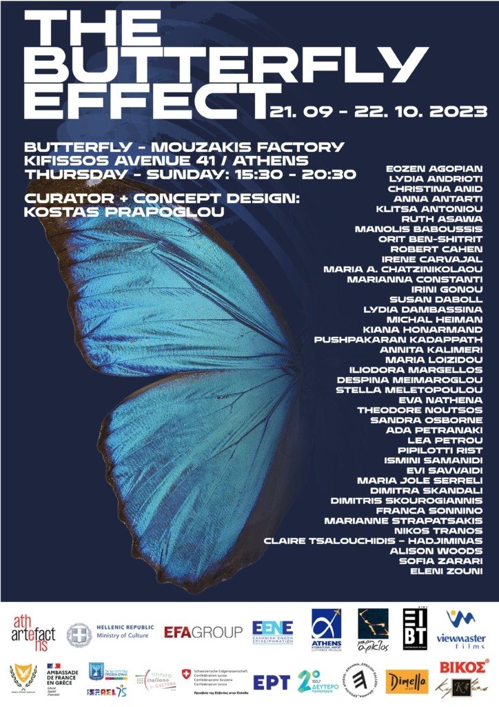 Ο αστικός μη κερδοσκοπικός οργανισμός “Artefact Athens” παρουσιάζει την έκθεση σύγχρονης τέχνης με τίτλο “το Φαινόμενο της Πεταλούδας” / “the Butterfly Effect” σε επιμέλεια Κώστα Πράπογλου, που θα εκτυλιχθεί σε πολυάριθμους χώρους του συγκροτήματος της γνωστής κλωστοϋφαντουργίας ΕΛ. Δ. Μουζάκης ΑΕΒΕΜΕ – «Πεταλούδα». Τα εγκαίνια της έκθεσης θα πραγματοποιηθούν τη Πέμπτη 21 Σεπτεμβρίου στις 7 μ.μ., ενώ θα είναι ανοιχτή στο κοινό έως τις 22 Οκτωβρίου.