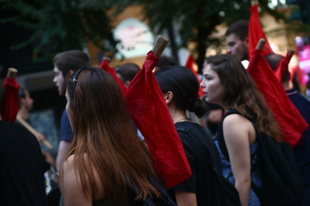 Στην πρώτη και πολυπληθέστερη συμμετείχαν μέλη οργανώσεων και συλλογικοτήτων της εξωκοινοβουλευτικής Αριστεράς, που πραγματοποίησαν νωρίτερα συγκέντρωση στο άγαλμα του Ελ. Βενιζέλου.