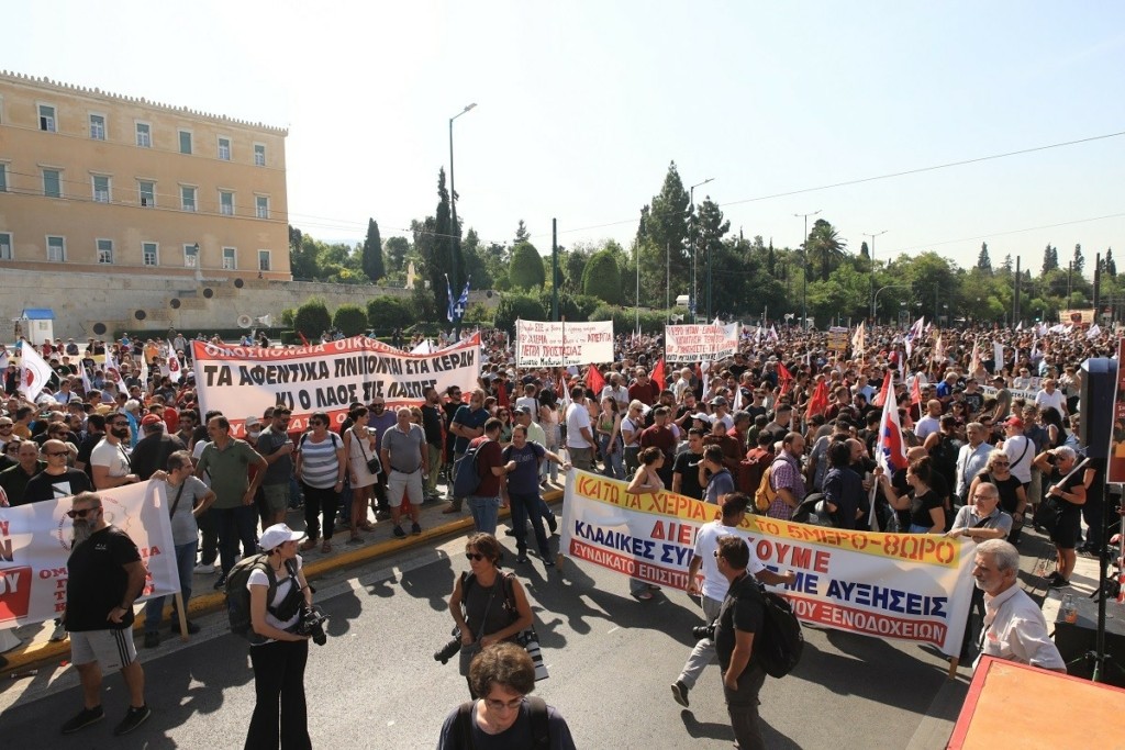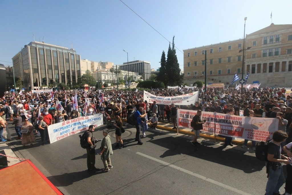 Μεγάλη απεργιακή συγκέντρωση πραγματοποίησαν από τις 10:30, στην πλατεία Συντάγματος, ομοσπονδίες, εργατικά κέντρα, σωματεία και μαζικοί φορείς με κεντρικό σύνθημα «Ή τα κέρδη τους ή οι ζωές μας. Ενάντια στο νομοσχέδιο έκτρωμα και την εγκληματική πολιτική».