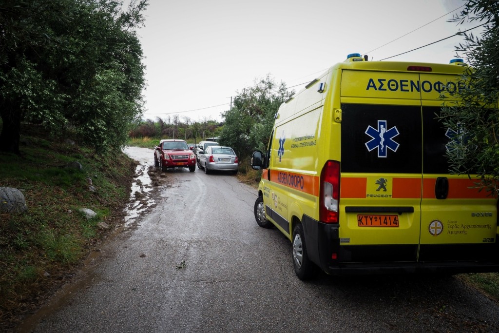 Στην περιοχή πνέουν άνεμοι βόρειο 4 μποφόρ ενώ στο σημείο έφτασε και ασθενοφόρο του ΕΚΑΒ.