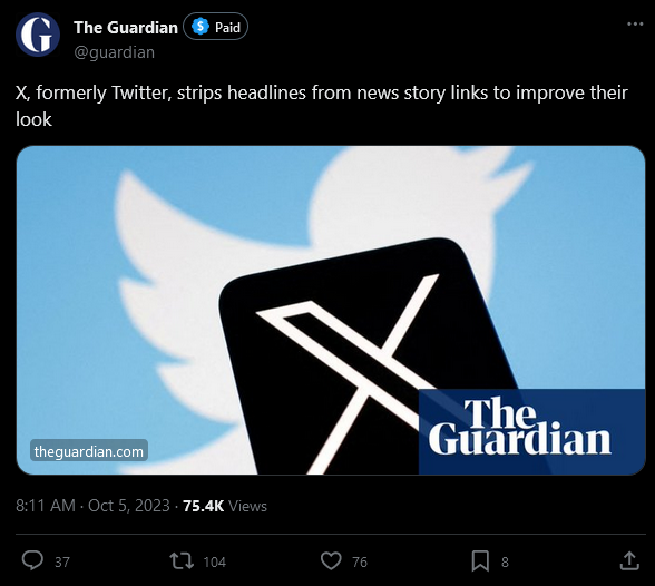 Η X, η πλατφόρμα που γνωρίσαμε ως Twitter, σταματά σταδιακά να εμφανίζει τους τίτλους για συνδέσμους που δημοσιεύονται από ειδησεογραφικούς ιστότοπους, αφού ο ιδιοκτήτης της Έλον Μασκ είπε ότι θα κάνει τις αναρτήσεις να φαίνονται καλύτερα.