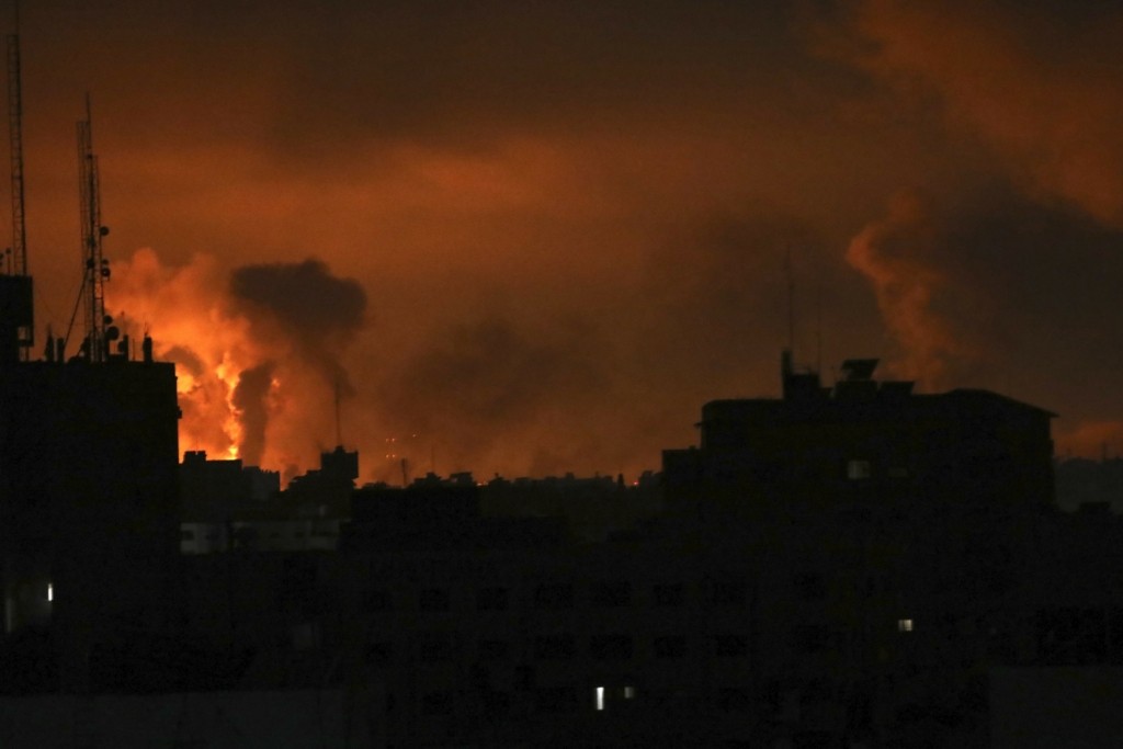 Αργά το βράδυ, ο ουρανός πάνω από τη Γάζα ήταν πορτοκαλοκόκκινος, από τις εκρήξεις και τις φωτιές που ξέσπασαν από τα ισραηλινά πλήγματα.