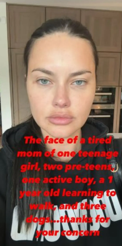«Αυτό είναι το πρόσωπο μιας κουρασμένης μαμάς που έχει μια κόρη στην εφηβεία, μία κόρη λίγο πριν μπει στην εφηβεία, ένα αγόρι 1 έτους που μαθαίνει να περπατάει και τρία σκυλιά. Ευχαριστώ για το ενδιαφέρον σας», έγραψε στο σχόλιο που συνόδεψε τη φωτογραφία με το πρόσωπό της να μην έχει ίχνος μακιγιάζ.