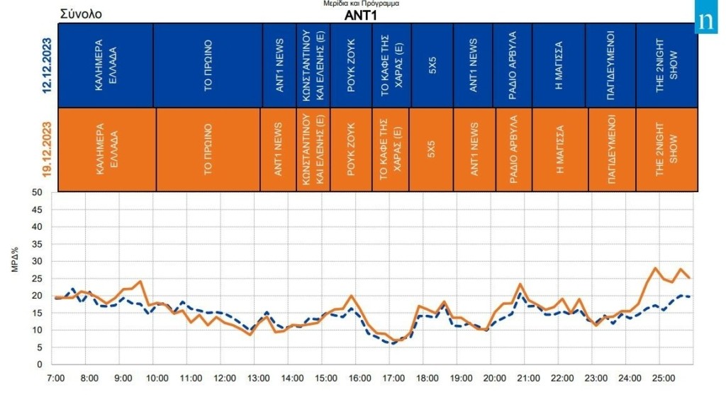 Νέο ρεκόρ τηλεθέασης σε επίπεδο καναλιων σημειώθηκε την Τρίτη, αυτή τη φορά από τον ΑΝΤ1. Ο δείκτης της Nielsen «στάθηκε» στο 15,5%, το υψηλότερο μερίδιο της σεζόν ως τώρα, ξεπερνώντας το 15,1% που είχε καταφέρει το Mega και λίγο μετά είχε ισοφαρίσει ο ΑΝΤ1.