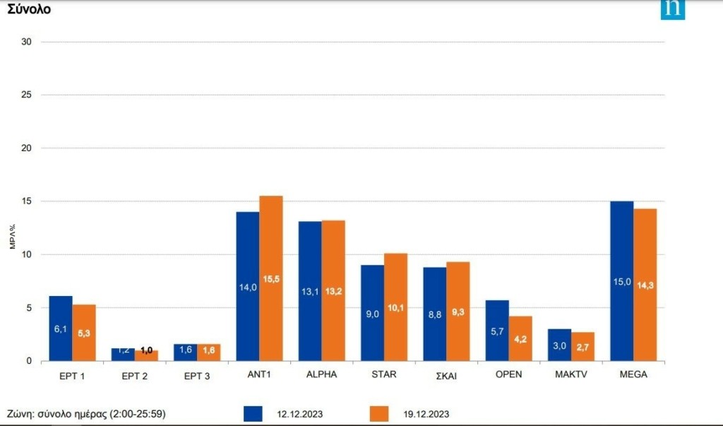Από τα αξιοσημείωτα της ημέρας η περαιτέρω συρρίκνωση του μεριδίου του Open το οποίο φαίνεται να χάνει ότι με κόπο και προσπάθεια είχε σταδιακά κατακτήσει από το καλοκαίρι κι έπειτα έως την περασμένη Παρασκευή.