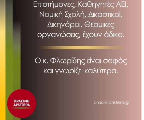 Ο κ. Φλωρίδης γνωρίζει καλύτερα και για αυτό θα πρέπει να σιωπήσουν.