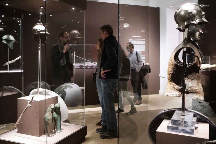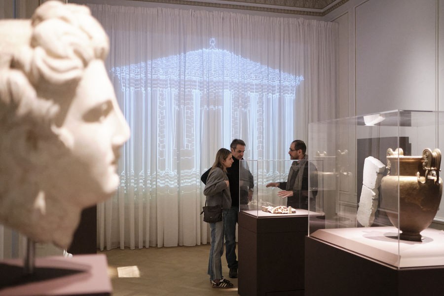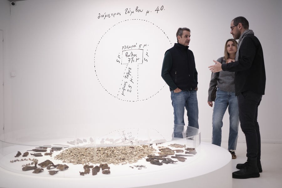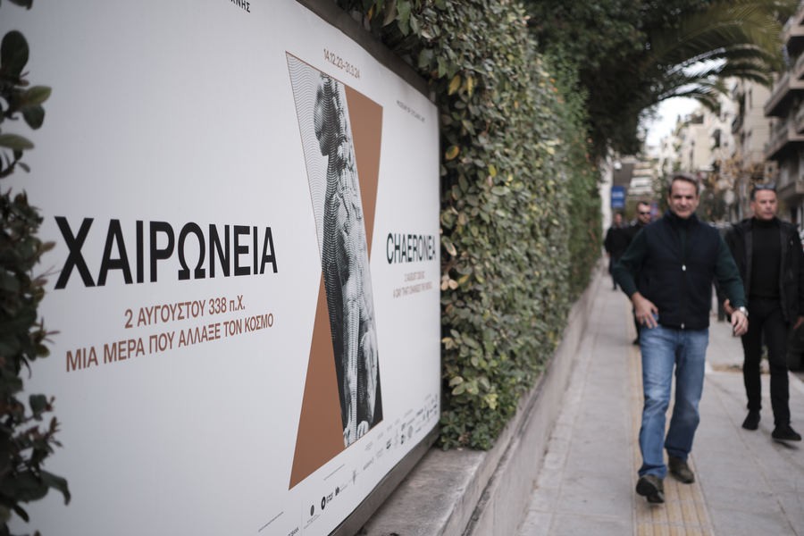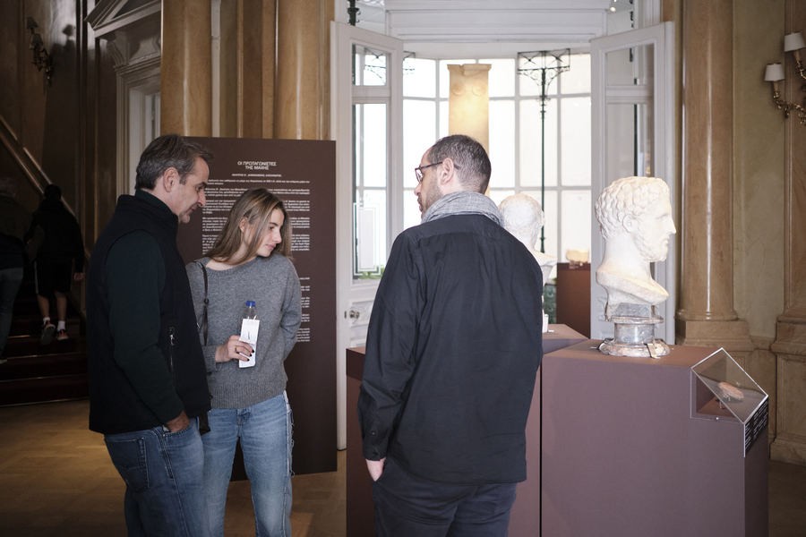 Ο πρωθυπουργός Κυριάκος Μητσοτάκης, συνοδευόμενος από την κόρη του Δάφνη, επισκέφθηκε σήμερα το μεσημέρι την έκθεση «Χαιρώνεια, 2 Αυγούστου 338 πΧ: Μια μέρα που άλλαξε τον κόσμο».
