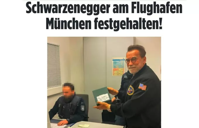 Ο Άρνολντ Σβαρτσενέγκερ τέθηκε υπό κράτηση στο αεροδρόμιο του Μονάχου και υποβλήθηκε σε ερωτήσεις «βάσει της φορολογικής νομοθεσίας» για ένα μη καταχωρημένο πολυτελές ρολόι που σχεδιάζει να δημοπρατήσει, σύμφωνα με γερμανικά μέσα ενημέρωσης.