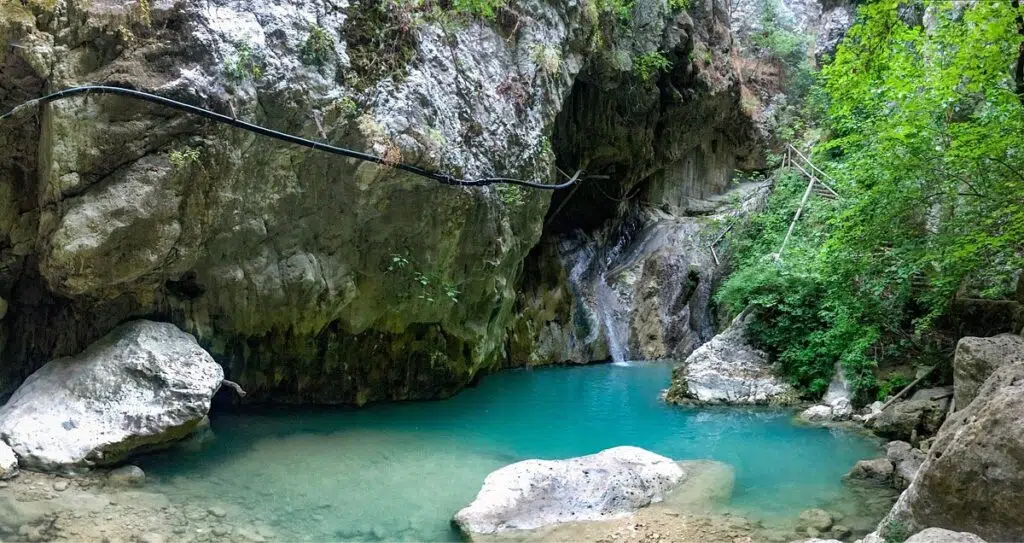 Ο πρώτος καταρράκτης που συναντάμε είναι και ο μικρότερος. Τόσο αυτός όσο και ο επόμενος είναι σαν να είναι… κρυμμένοι ανάμεσα σε βράχους.