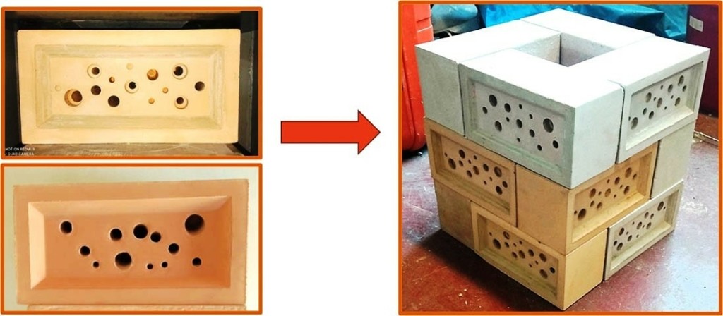 Στοχεύοντας λοιπόν στη διάσωση αυτών των πληθυσμών μελισσών, οι επιστήμονες – ερευνητές από τα τμήματα Πολιτικών Μηχανικών και Αρχιτεκτόνων Μηχανικών της Πολυτεχνικής Σχολής του ΔΠΘ στην Ξάνθη καθώς και από το τμήμα Φυσικής της Σχολής Θετικών Επιστημών του ΔΠΘ στην Καβάλα, κατασκεύασαν ένα καινοτόμο τούβλο ως βιότοπο για τις μέλισσες επικονιαστές, που ταυτόχρονα μπορεί να αποτελέσει και δομικό υλικό κατάλληλο για τη δημιουργία φέρουσας τοιχοποιίας.