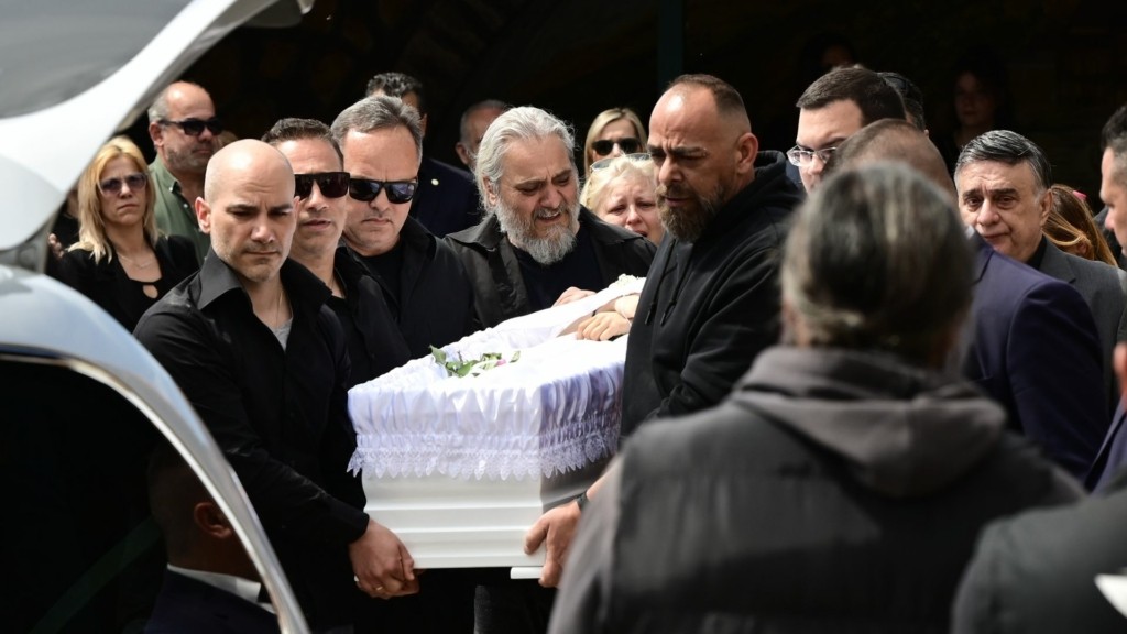 Τραγική φιγούρα στην κηδεία η μητέρα της 28χρονης Κυριακής, που κηδεύτηκε με νυφικό, σε λευκό φέρετρο.