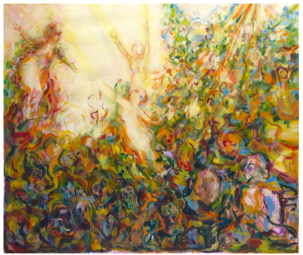 Ο πίνακας «To hell and back» είναι εμπνευσμένος από την ιστορία της Περσεφόνης, απ’ την πορεία της από τον κάτω κόσμο στον επάνω. Η αρχαιοελληνική μυθολογία βρίσκεται στον πυρήνα της έκθεσης – άλλωστε η Κατερίνα Παπαζήση είναι επηρεασμένη από το κίνημα της Αναγέννησης, αφομοιωμένο όμως με μια σύγχρονη παλλόμενη μπαρόκ οπτική. «Δεν ζωγράφιζα απαραίτητα την Περσεφόνη, όμως η πορεία της από τον κάτω κόσμο στον επάνω, για να επιστρέψει στη μητέρα της, με έχει επηρεάσει πολύ συμβολικά. Πώς από αυτή την υλικότητα φεύγεις και απελευθερώνεσαι! Νομίζω ότι αυτό που περιγράφω είναι το ανθρώπινο βίωμα. Τι γίνεται όταν απελευθερώνεσαι από την ύλη»;