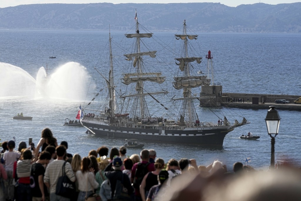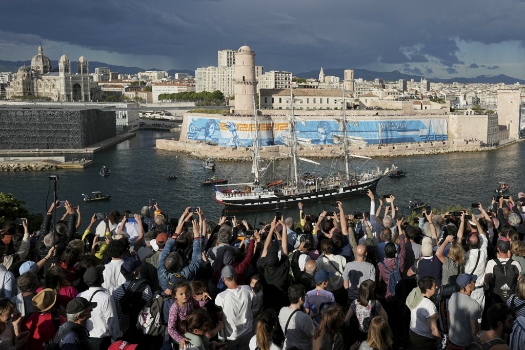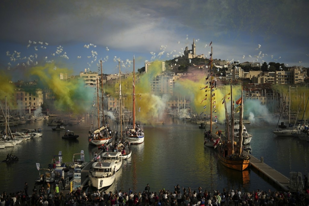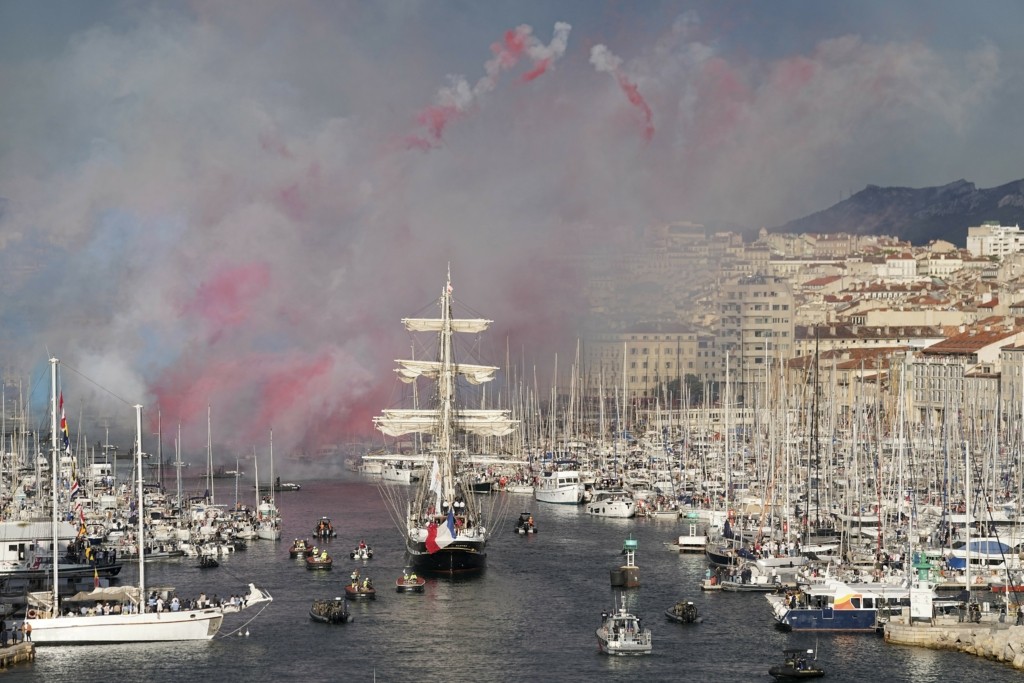 Πλήθος κόσμου συγκεντρώθηκε στο παλιό λιμάνι της Μασσαλίας για την υποδοχή της Ολυμπιακής Φλόγας που έφτασε στη Γαλλία δια θαλάσσης, μέσω του ιστορικού ιστιοφόρου Belem.