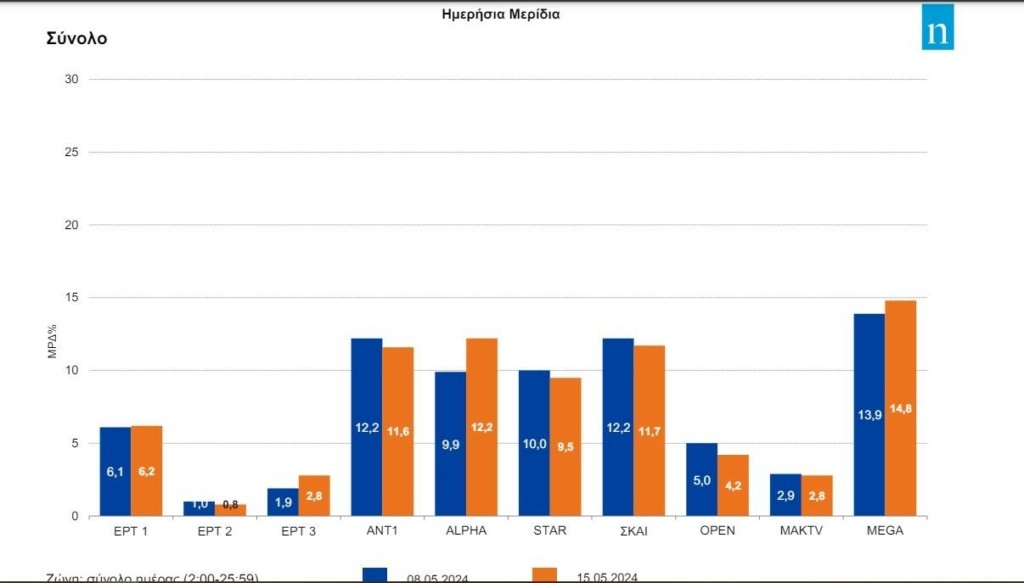 Η ΕΡΤ1, αύξησε κατά μισή ποσοστιαία μονάδα το αποτύπωμα της στην πίτα τηλεθέασης από τη μια μέρα στην άλλη, ενώ σχεδόν αναλλοίωτο ήταν εκείνο του Open.