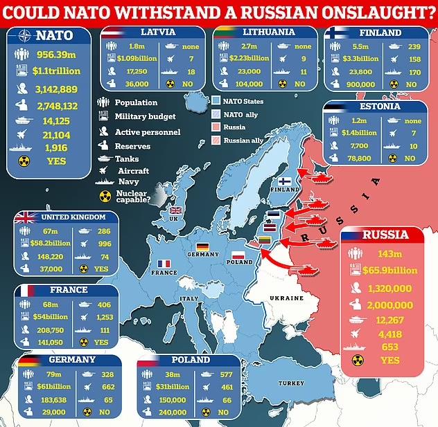 Με βάση αυτή την προειδοποίηση η MailOnline καταγράφει τι θα σήμαινε μία ανοιχτή πολεμική σύγκρουση μεταξύ του ΝΑΤΟ και της Ρωσίας.