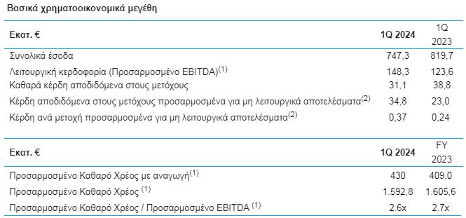 Τα Κέρδη προ φόρων διαμορφώθηκαν σε € 61,9 εκατ. έναντι € 63,7 εκατ. την αντίστοιχη περίοδο του 2023.