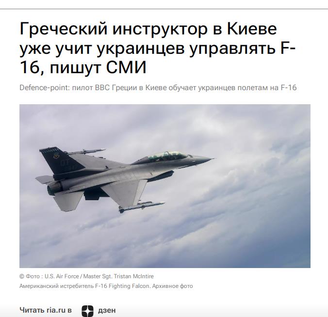 Εντωμεταξύ, σύμφωνα με πληροφορίες που δημοσιεύει το Ria Novosti, η ελληνική κυβέρνηση έστειλε αξιωματικό της Πολεμικής Αεροπορίας στο Κίεβο, για να εκπαιδεύσει τους Ουκρανούς στα F-16.