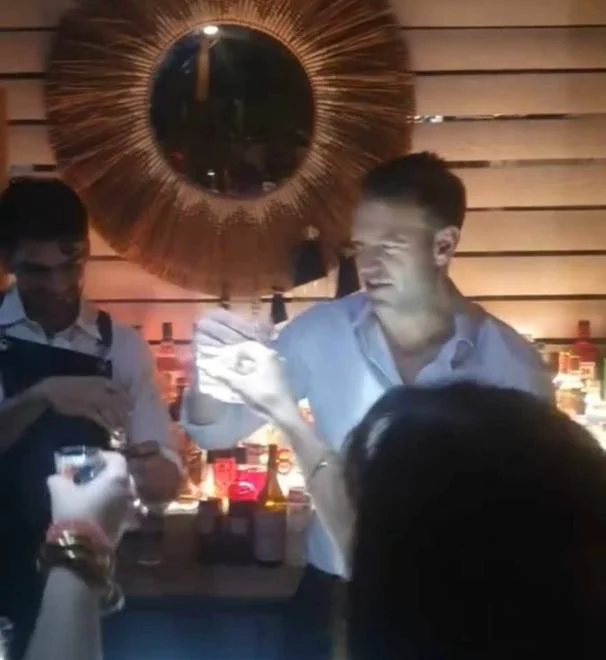 Στο μπαρ όπως φαίνεται και στις φωτογραφίες της ιστοσελίδας, tempo24.news, σέρβιρε σφηνάκια σε όσους βρίσκονταν εκεί και μάλιστα κέρασε κιόλας.