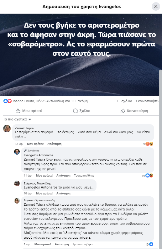 Αφορμή ήταν μία ανάρτηση του Αντώναρου, όλο «φαρμάκι» για τους αμφισβητίες του Κασσελάκη: