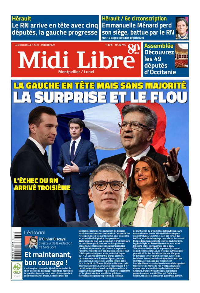 Την ώρα που πυκνή ομίχλη πέφτει την επομένη των εκλογών, πολλοί συντάκτες του κύριου άρθρου των γαλλικών εφημερίδων, όπως της Midi Libre, χαιρετίζουν «το χαστούκι στον Εθνικό Συναγερμό που πήρε την τρίτη θέση και δεν θα κυβερνήσει την χώρα».