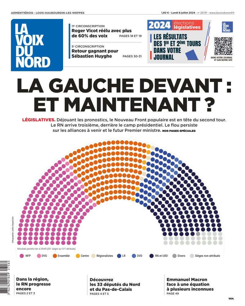 Περισσότερο από ποτέ, «κυριαρχεί η αοριστία για τις μελλοντικές συμμαχίες και τον μελλοντικό πρωθυπουργό», γράφει η Voix du Nord που έχει τον πρωτοσέλιδο τίτλο «Η αριστερά μπροστά: και τώρα;».