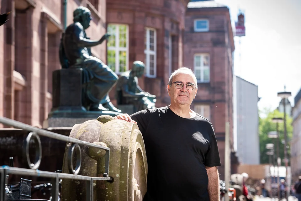 O κ.Ματζαράκης με φόντο τον Όμηρο και τον Αριστοτέλη / Πηγή: Klaus Polkowski
