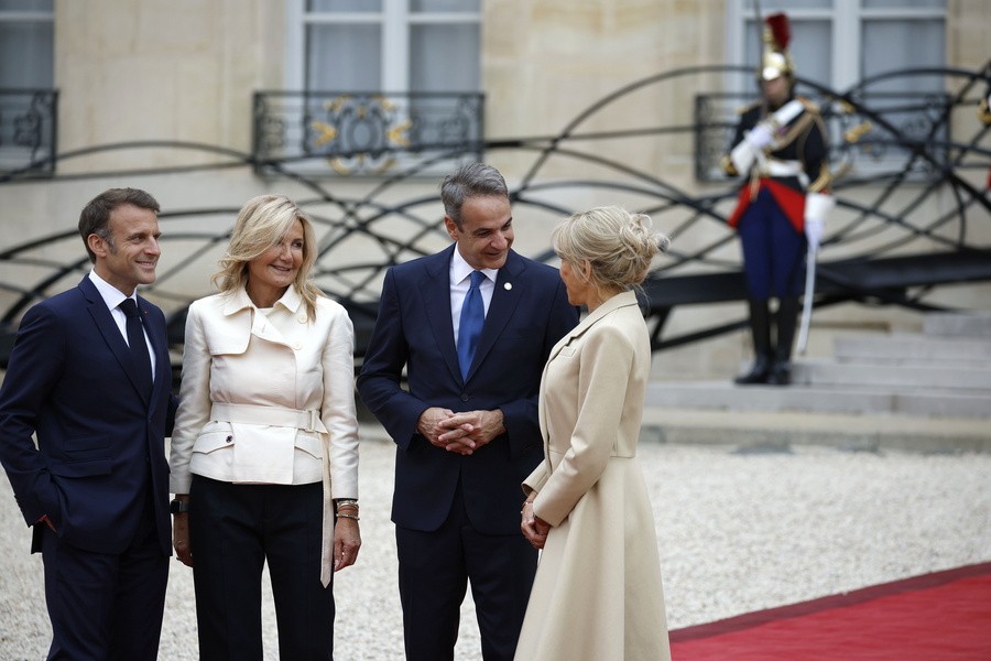 Λίγο πριν τις 5:30 το απόγευμα ο Κυριάκος Μητσοτάκης και η Μαρέβα Γκραμπόφσκι, έφτασαν στο Μέγαρο των Ηλυσίων όπου τους υποδέχθηκε το ζεύγος Μακρόν.