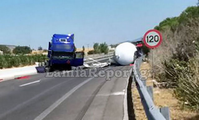 Μπλόκαρε την εθνική οδό Αθηνών – Λαμίας στο ύψος της Υλίκης βυτιοφόρο που κουβαλούσε υγραέριο και εξετράπη της πορείας του στο 95.5 χλμ το μεσημέρι της Δευτέρας.