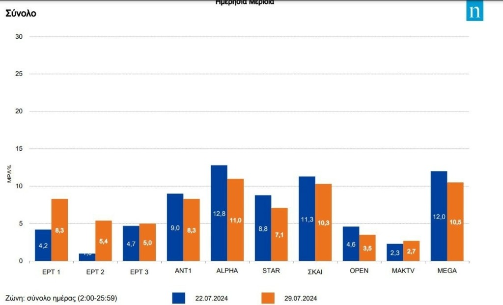 Έχει ενδιαφέρον το στοιχείο ότι τρία κανάλια, στην «καρδιά» του καλοκαιριού, εμφανίζονται με διψήφια μερίδια τηλεθέασης.